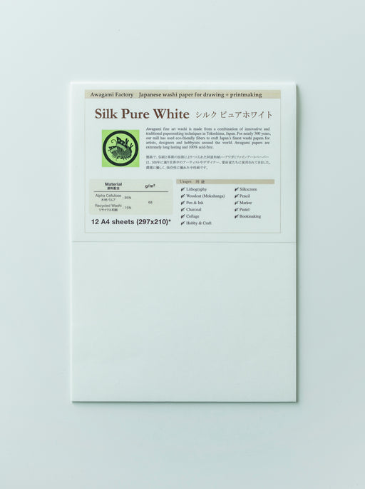 AwagamiAwagami Fine Art Paper Pack - Silk Pure White 68 gsm - A4 - (12 Sheets) An excellent introductory washi. Silk Pure White is a warm white/medium wei...
